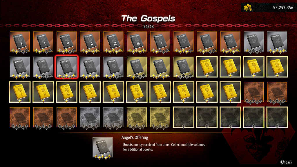 Various treasures are hidden throughout the dungeon, and escaping with them will provide Mine with helpful upgrades. These treasures include Gospels, which boost his abilities; Survival Weapons, which can be used as offensive skills; and Mercenaries—allies you can hire to fight alongside you.