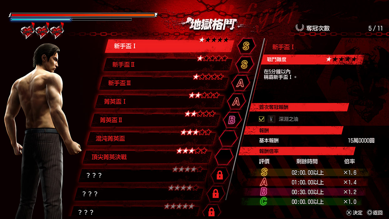 「地獄競技場」是神室町新興的地下格鬥俱樂部,出資的VIP們會賭上巨額獎金欣賞對戰。