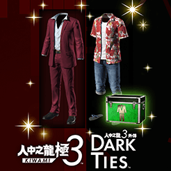 - ※使用本內容須擁有另售的《人中之龍 極3 / 人中之龍3外傳 Dark Ties》主遊戲。此外,若須套用最新版的更新檔,請先更新後再使用。
