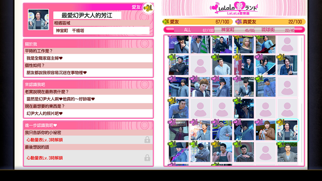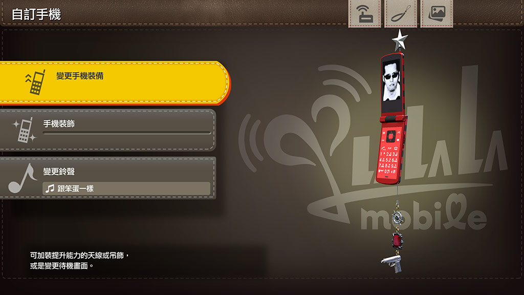 在可以自由裝飾手機的「自訂手機」功能裡,你可以更換天線、吊飾以及待機畫面等等。桐生的能力也會隨著配件增強,不妨動手試試各種搭配!此外,你也可以使用水鑽或貼紙等道具自由裝飾手機。快來設計你最愛的專屬風格吧!