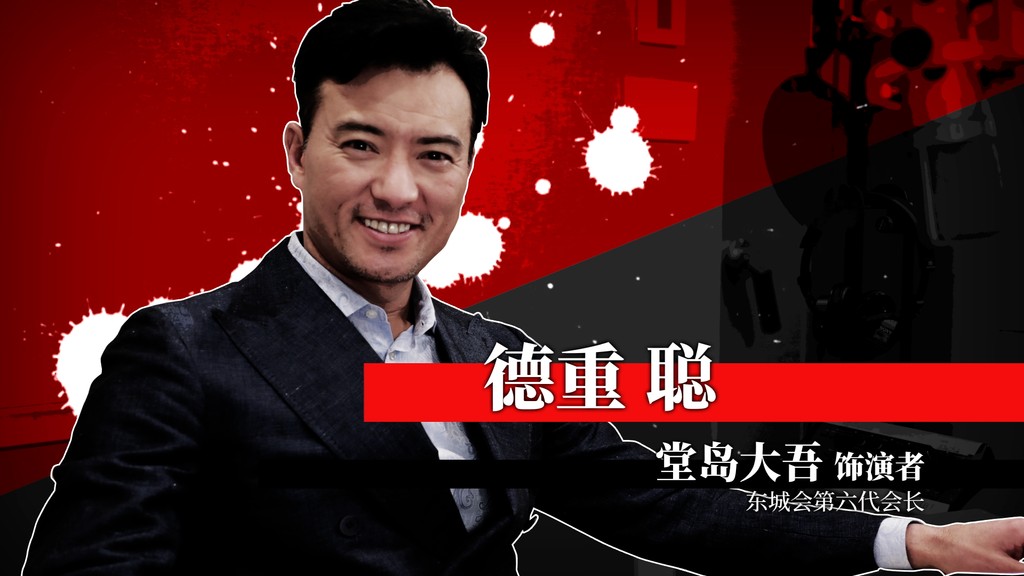 年轻时因打架和火拼而名声大噪,凭着一副拳头在组中节节高升。如今,他正等待时机,誓要摆脱“万年代理”的头衔。 - 东城会第六代会长 堂岛 大吾 [出演]德重 聪