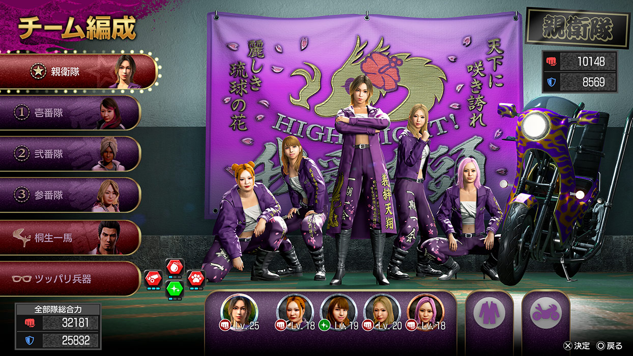 4つの部隊のそれぞれの特攻服やバイクは、部隊ごとに見た目をカスタマイズすることが可能。色や柄を自由に設定できるほか、特攻服については背中に様々な気合の入った言葉を刻むこともできる。特攻服やバイクをカスタマイズして、自分好みの隊を作り上げよう。