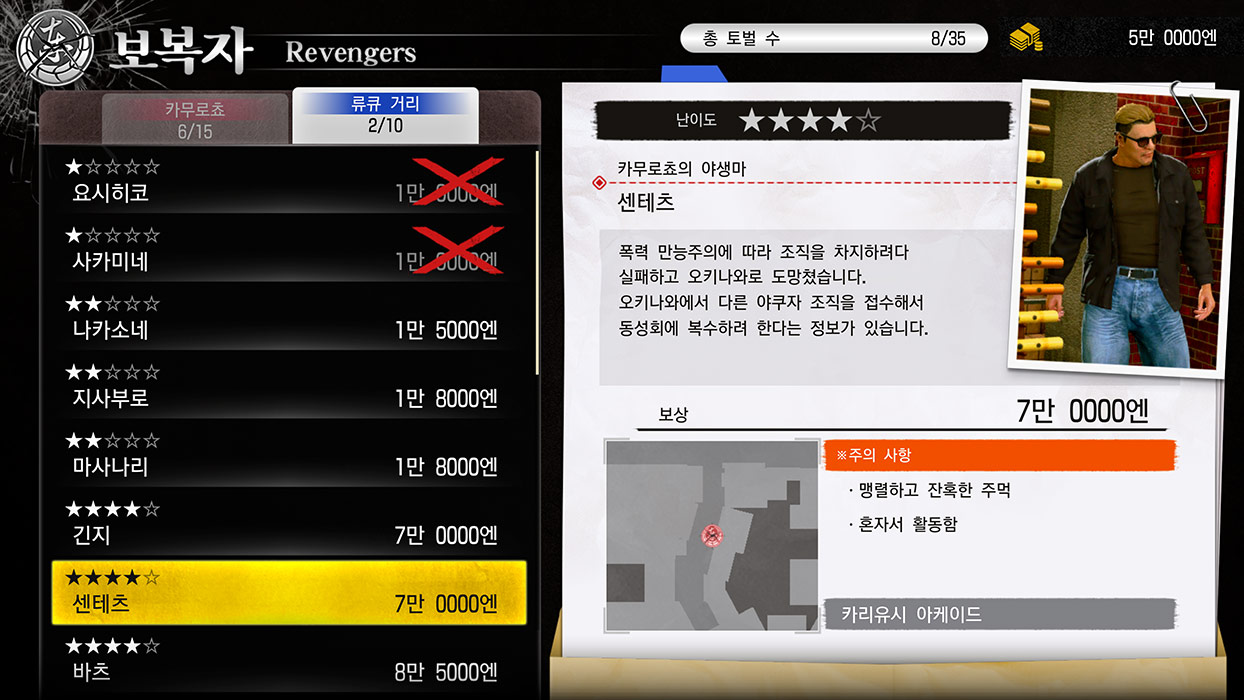 이 콘텐츠는 거리에 숨어있는 보복자들을 토벌하고 포획하여 그에 따른 돈을 지불받는 방식이다.