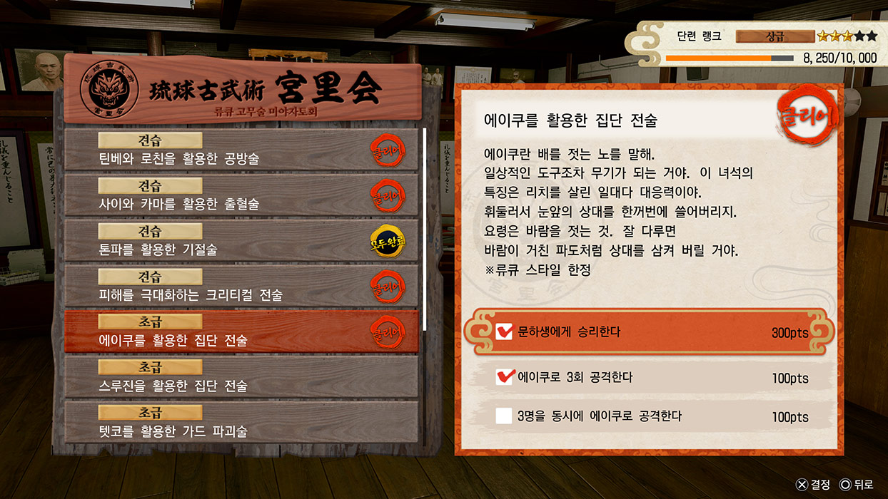 땀 흘려 훈련에 힘쓰고 승급에 도전해서 류큐 고무술의 마스터가 되어 보자!