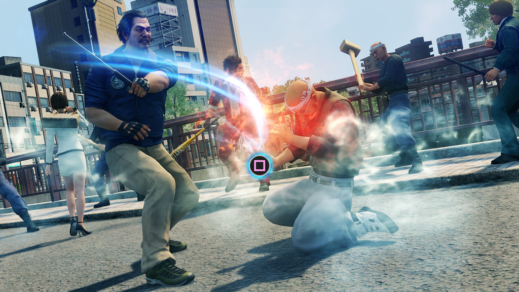 敵に警棒を打ち付ける連続攻撃。ジャストアクションに成功すると攻撃回数を増やすことができる。